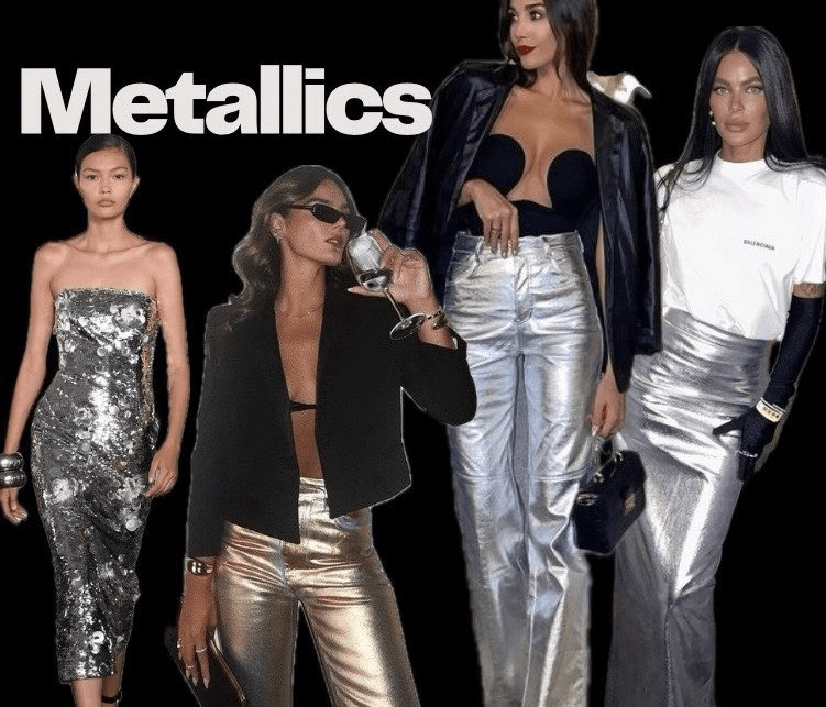 Culorile metalice au insuflat mereu modernitatea și futurismul, iar ele nici anul acesta nu încetează să se poarte. Printre ele, se numără și paietele, care au câștigat și ele podiumurile. Printre designerii care au prezentat ținute în culori metalice sunt Schiaparelli, Ralph Lauren, Blumarine, Mowalola și Versace.